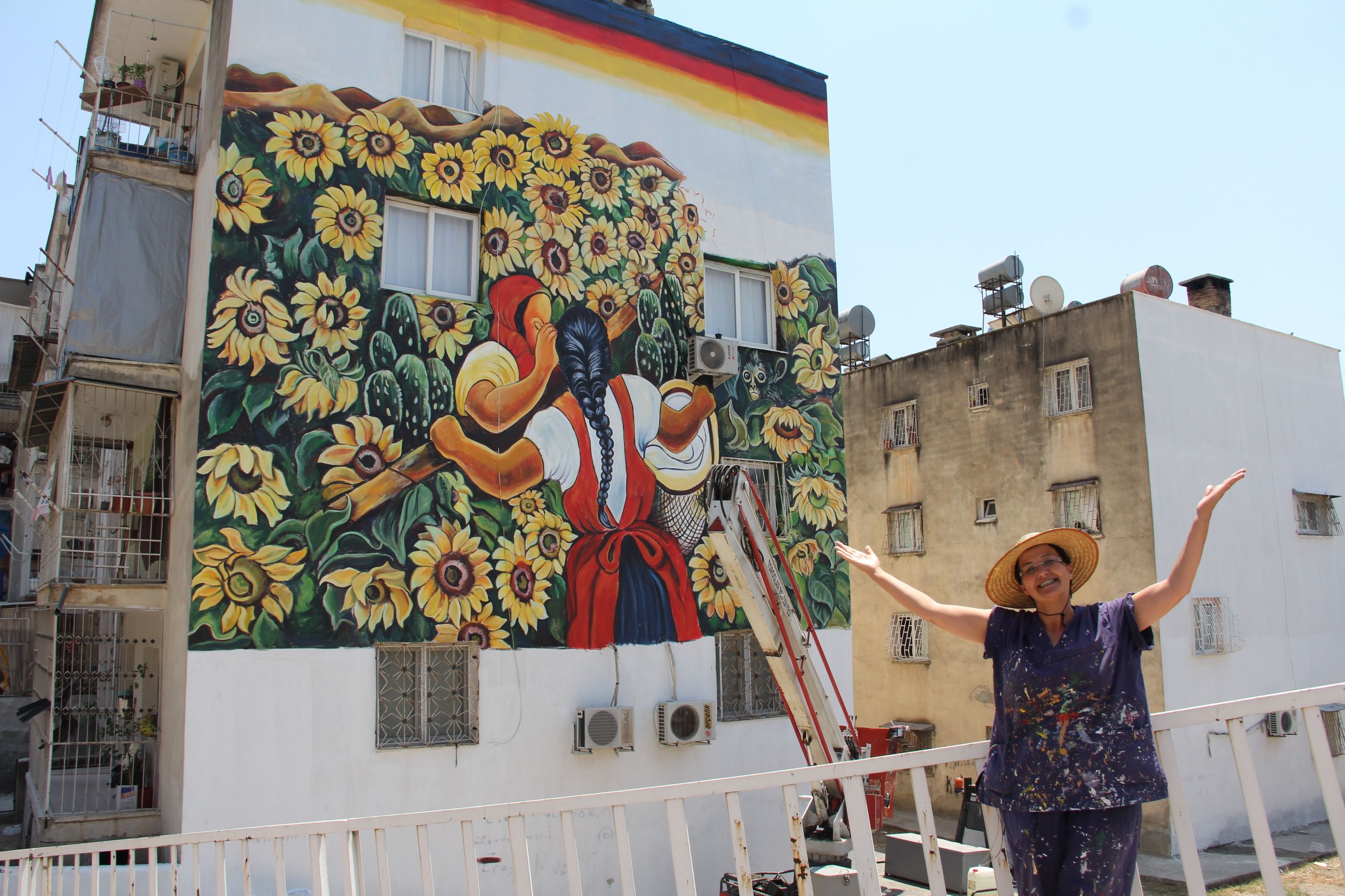 Proje kapsamında, 2017 yılından itibaren Akbelen Bulvarı üzerindeki boyaları dökülmüş, yıpranmış toplu konut binalarından 15’inin duvarlarını Frida Kahlo, Leonardo Da Vinci, Salvador Dali, Vincent Van Gogh, Pablo Picasso, Neşet Günal ve Osman Hamdi Bey gibi dünyaca ünlü ressamların en güzel eserlerinin reprodüksiyonları ile bezeyen Ressam Nazife Bilgin Hazar, kolları yeniden sıvadı. Ressam Hazar, Güneykent Mahallesi Mersinli Ahmet Bulvarı üzerindeki toplu konut binalarının duvarlarını da ünlü eserlerle donatmaya başladı. Frida Kahlo’nun ‘Ben ve Maymun’ adlı eserinin reprodüksiyonu tamamlayan Ressam Hazar, ikinci çalışmasında Diego Rivera’nın ‘Ay Çiçekleri ve Kadınlar’ eserini seçti. Hazar, bu çalışmasında da sona yaklaştı.