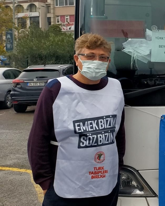 Dr. Burhan Söker: 1985’te faşizme karşı direnirken bu mesleği  seçtim. Beni yetiştiren, emek veren, yol gösteren emekçilerin  ve benim alın terimdir. Siz yokken ben tarlada pamukta, demir çelikte vagonlarda demir kangalların içinde, hem de lise öğrencisi iken çalışarak tıp fakültesini kazandım. Üstelik gündüz tıp fakültesinde okurken gece taşeron işçilik yaptım. İktidarlar ve devlet her zaman için özgürlüğümü ve emeğimi görmezden geldi. Bu ülkeyi ve topluma karşı sorumluluğumu terk edip gitmeyi hiçbir zaman düşünmedim. Siz kendinize bakın. SDP (sağlıkta yıkım politikası) ile hem mesleğimi değersizleştirmeye hem de toplum sağlığını yok etmeye çalışıyorsunuz. İktidarlar gider, değişir. Emek ve emeğin mücadelesi kalır. Gitmedik, gitmiyoruz, haklıyız, özlük haklarımız ve toplum sağlığı için mücadeleye devam edeceğiz.