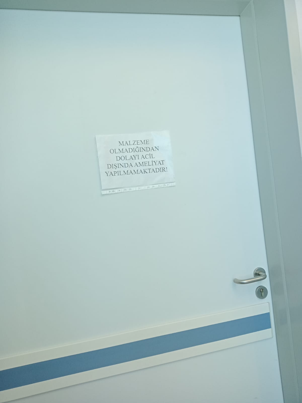 Yaşanan medikal ürün ve ilaç krizinden kaynaklı uzun süredir hastalar eczane raflarında birçok ilacı bulmakta sıkıntı çekiyor. Yaşanan medikal malzeme ve ilaç sıkıntısı artık kamu hastanelerinde yapılan ameliyatlara sirayet etmiş durumda. Medikal ürün temininde yaşanan sıkıntı en çok beyin cerrahisi ve ortopedi ameliyatlarında yaşanmakta. Medikal ürün temin etme sıkıntısı Türkiye’nin en büyük hastanelerinden biri olan Mersin Şehir Hastanesi’nde de baş gösterdi. Mersin Şehir Hastanesi Beyin Cerrahisi Servisinde yaşanan ürün sıkıntısından dolayı poliklinik kapılarına “Malzeme olmadığından dolayı acil dışında ameliyat yapılmamaktadır” yazıları asıldı.