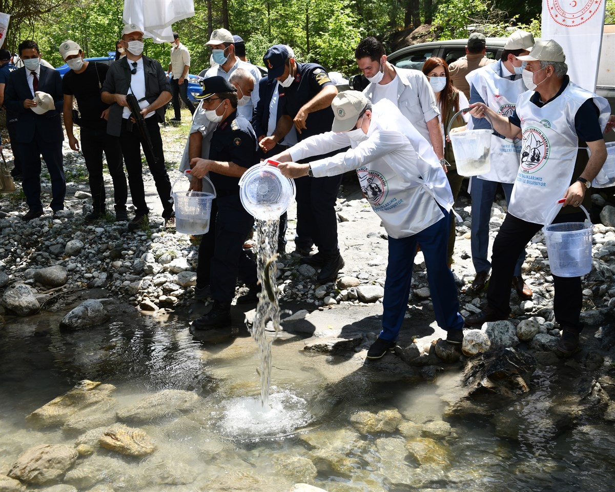 2019 yılı içerisinde toplam 1 milyon 750 bin adet yavru alabalık üretilen tesisi gezerek yetkililerden bilgi alan Vali Su, daha sonra “Doğal Alabalık Üretilmesi ve Orman İçi Suların Balıklandırılması” projesi kapsamında tesiste üretimi gerçekleştirilen kırmızı benekli alabalıkların temsili olarak doğal habitatlarına bırakılması etkinliğine katıldı.